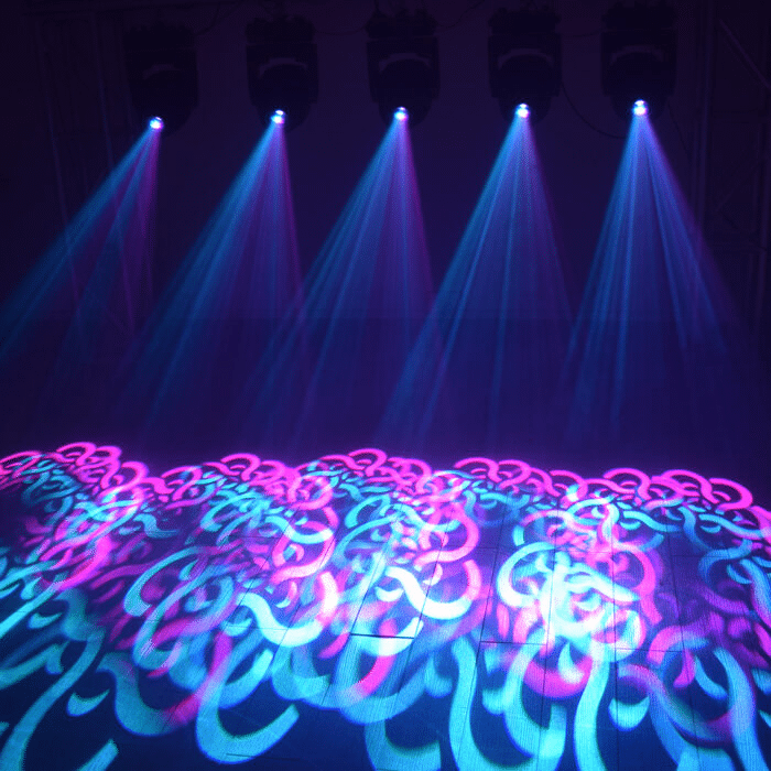 They make the stage no longer an empty plane but have a sense of texture. For example, projecting ripples when singing a slow song, the audience will feel a “calm” atmosphere. The precise character positioning only illuminates the singer, making the audience’s attention instantly focus on the artist. When purchasing, the key point is the clarity of the Gobo. It is recommended to choose products with a three-axis or four-axis cutting system.