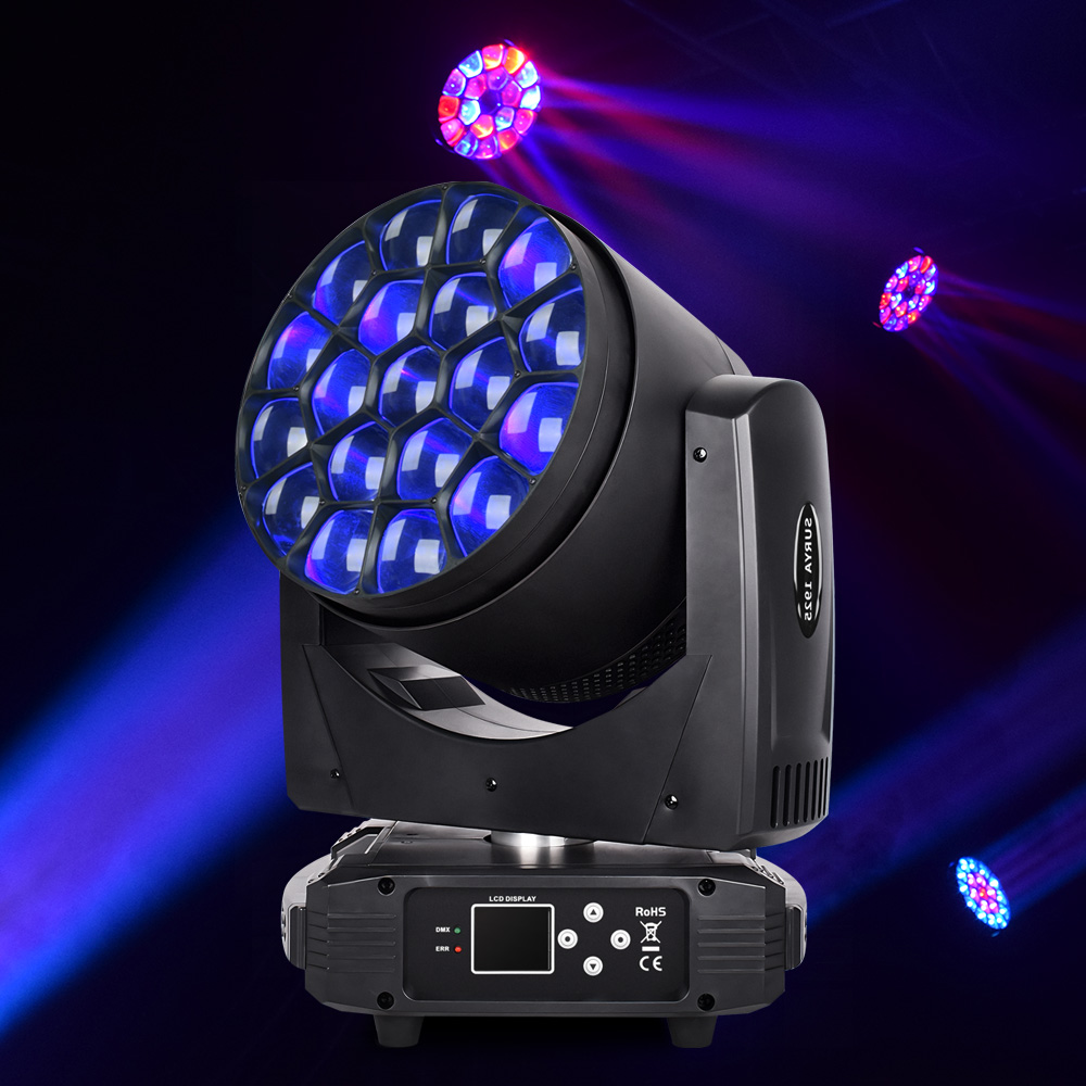 LED Wash Moving Head With Zoom DJ Lights 19x15W RGBW 4In1 Lyre Wash/Zoom/Beam LED Stage Lights